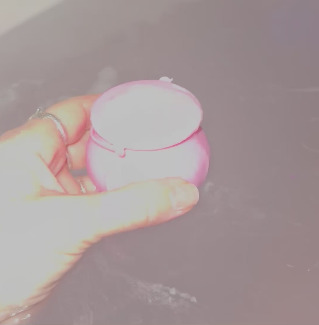This bath bomb in a pink plastic cauldron includes a red carnelian agate heart inside for a keepsake surprise. With biodegradable heart glitter on top & hand-cut heart confetti in the package, this make a perfect gift for a loved one or just to indulge in yourself!